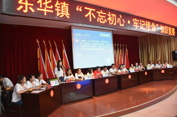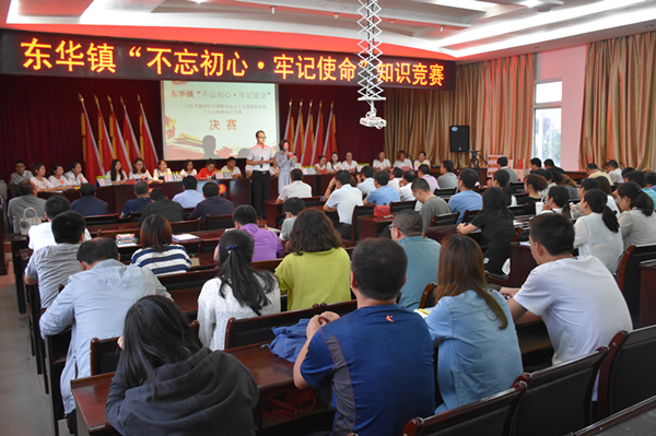 为充分展示全镇干部职工认真贯彻落实党的十九大精神,准确领会党的十九大精神的思想精髓、核心要义,7月12日,东华镇举办了“不忘初心·牢记使命”--- 习近平新时代中国特色社会主义思想和党的十九大精神知识竞赛活动,活动邀请了县委宣传部副部长徐勇莅临指导,镇班子成员、各村(社区)支书、主任和镇机关干部共计110余人参加了活动。